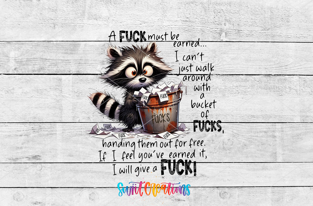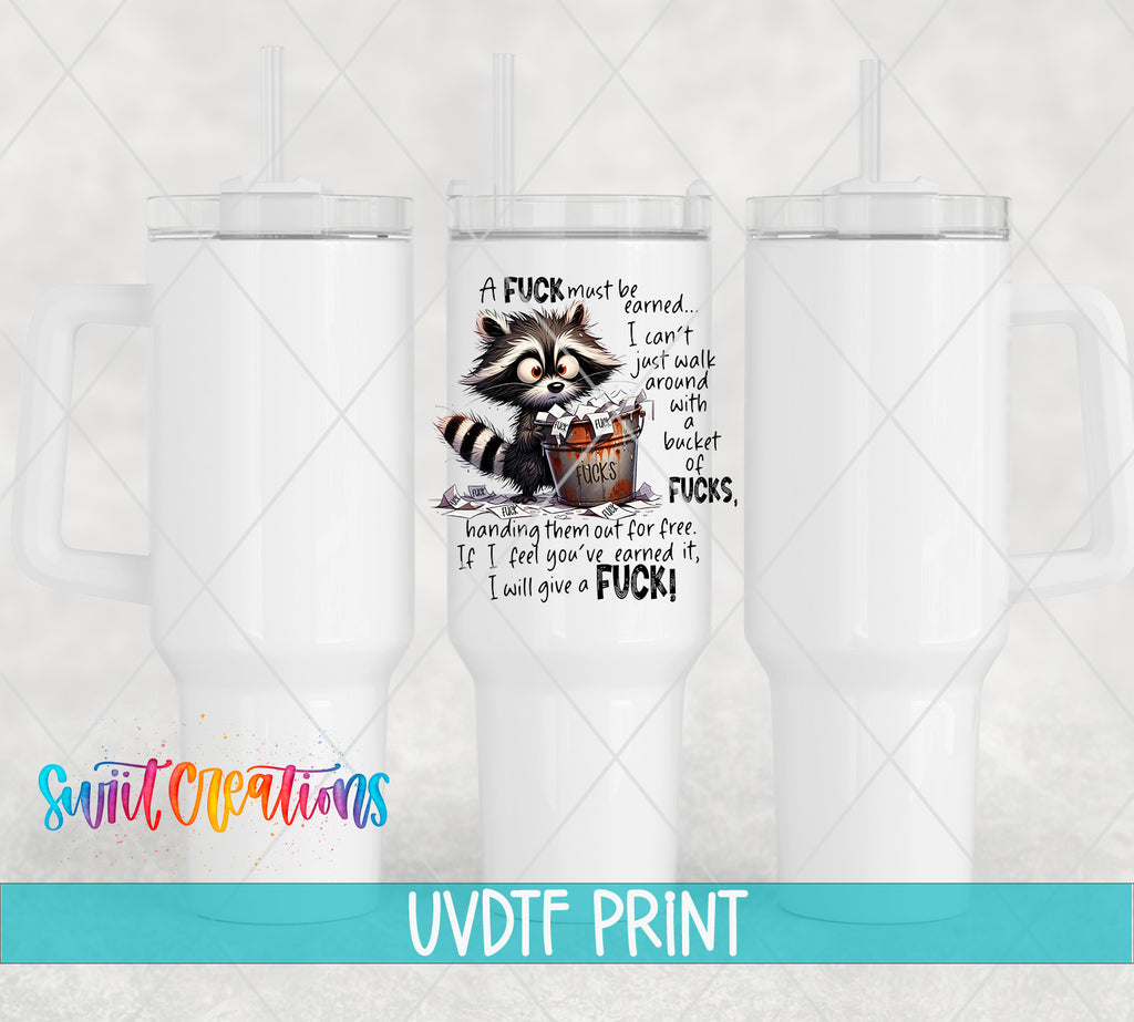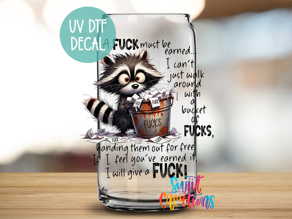 A F*ck Must Be Earned Raccoon UV DTF Decal | UV1584