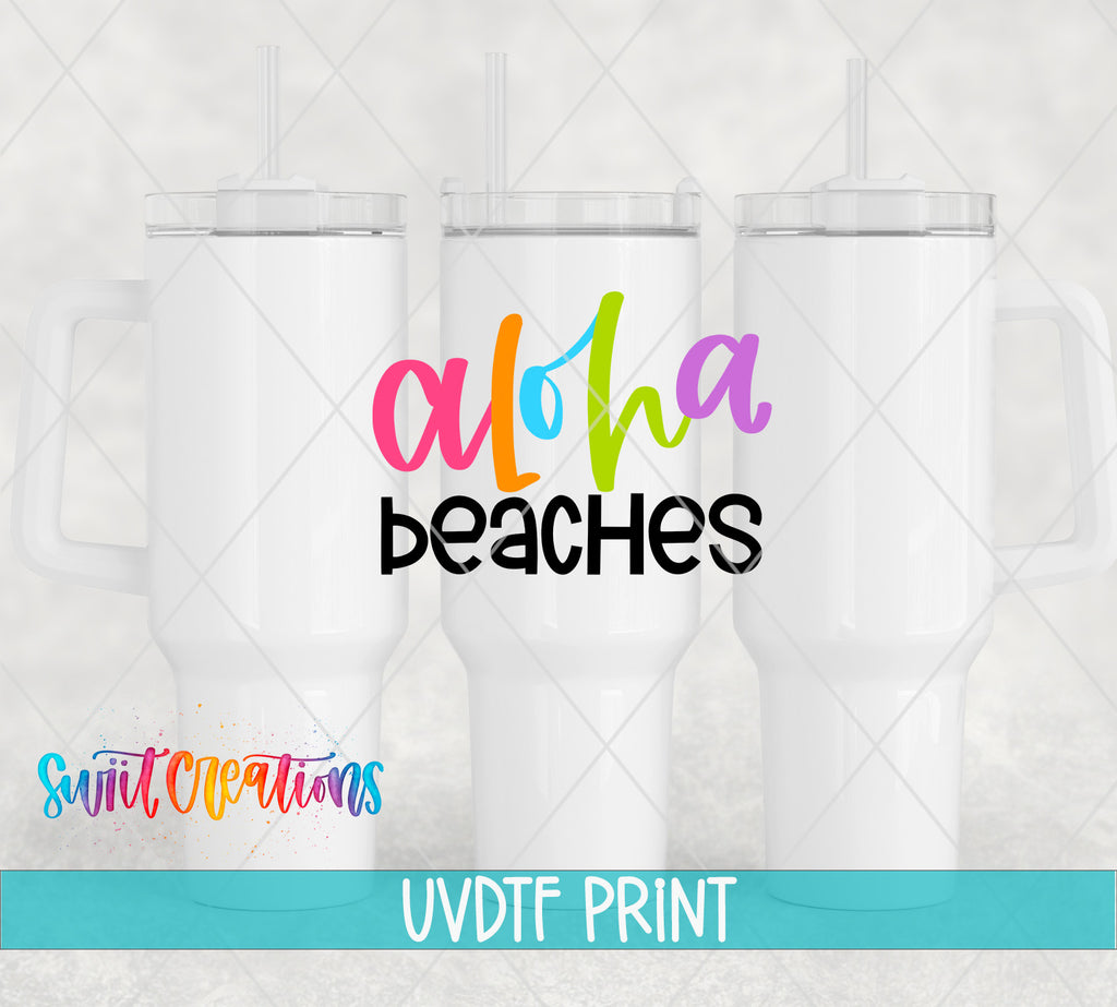 Aloha Beaches UV DTF Decal | Funny Tropical Summer Tumbler Decal | UV707