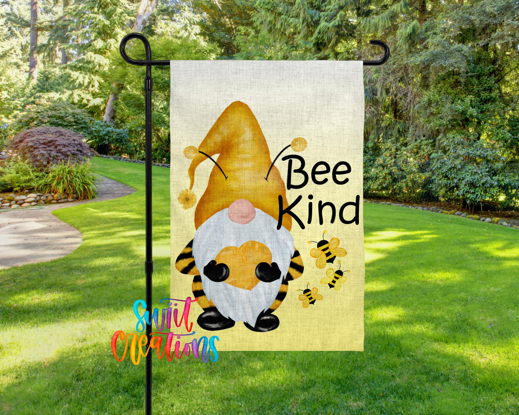 Bee Kind Gnome Garden Flag | Spring Yard Flag | Bumblebee Outdoor Decor | Cute Porch Decoration | Bee Lover Garden Flag | YF23