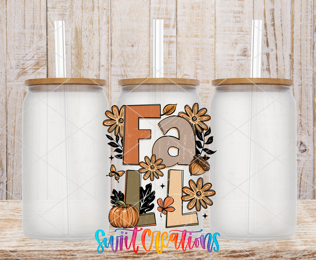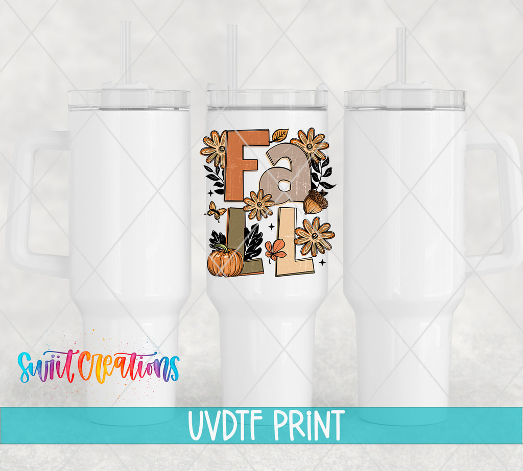 Boho Fall UV DTF Decal | Autumn Pumpkin Acorn Butterfly Cup Transfer | UV1611