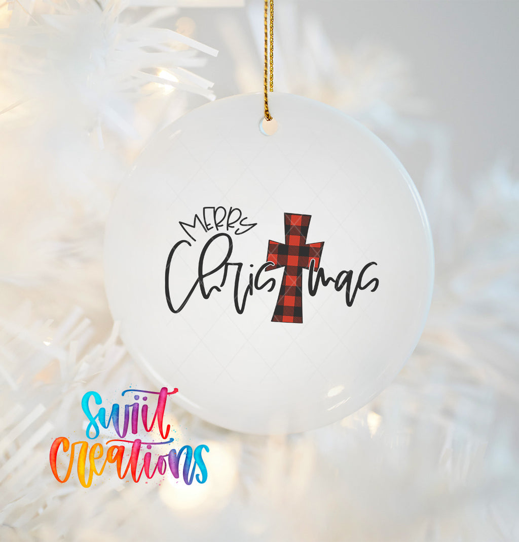 Buffalo Plaid Cross Merry Christmas UV DTF Ornament Decal | O-1688
