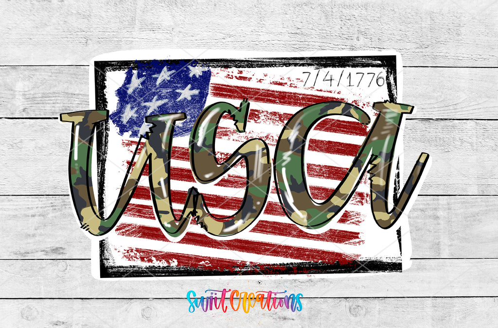 Camo USA 1776 Flag UV DTF Decal | Military USA UV DTF Wrap | UV081