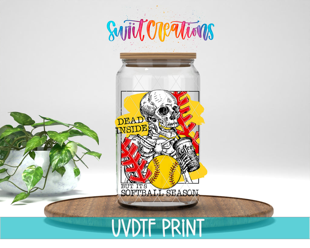 Dead Inside But It's Softball Season UV DTF Cup Decal | UV638