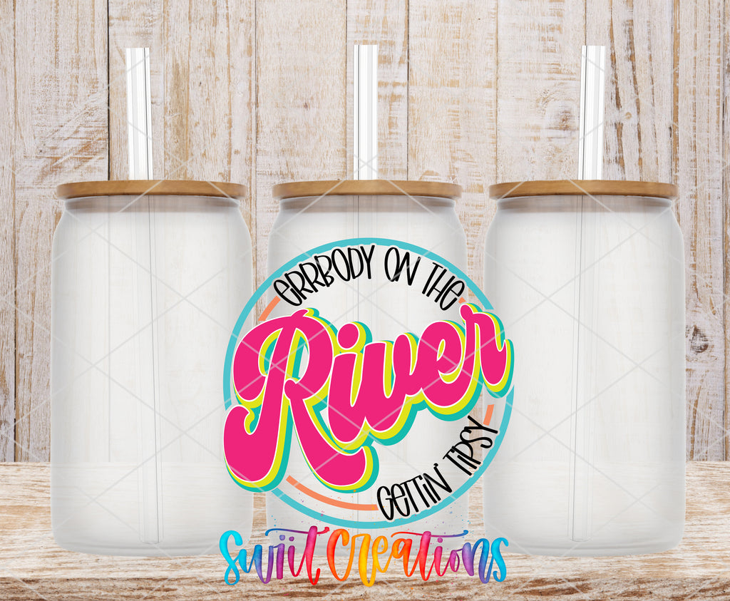 River Party UV DTF Wrap | Errbody On The River Gettin Tipsy Libbey Glass Cup Decal | Summer Drinking Wrap | UV849
