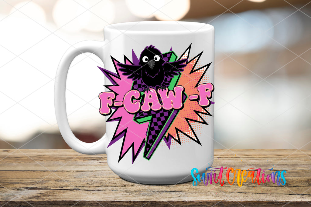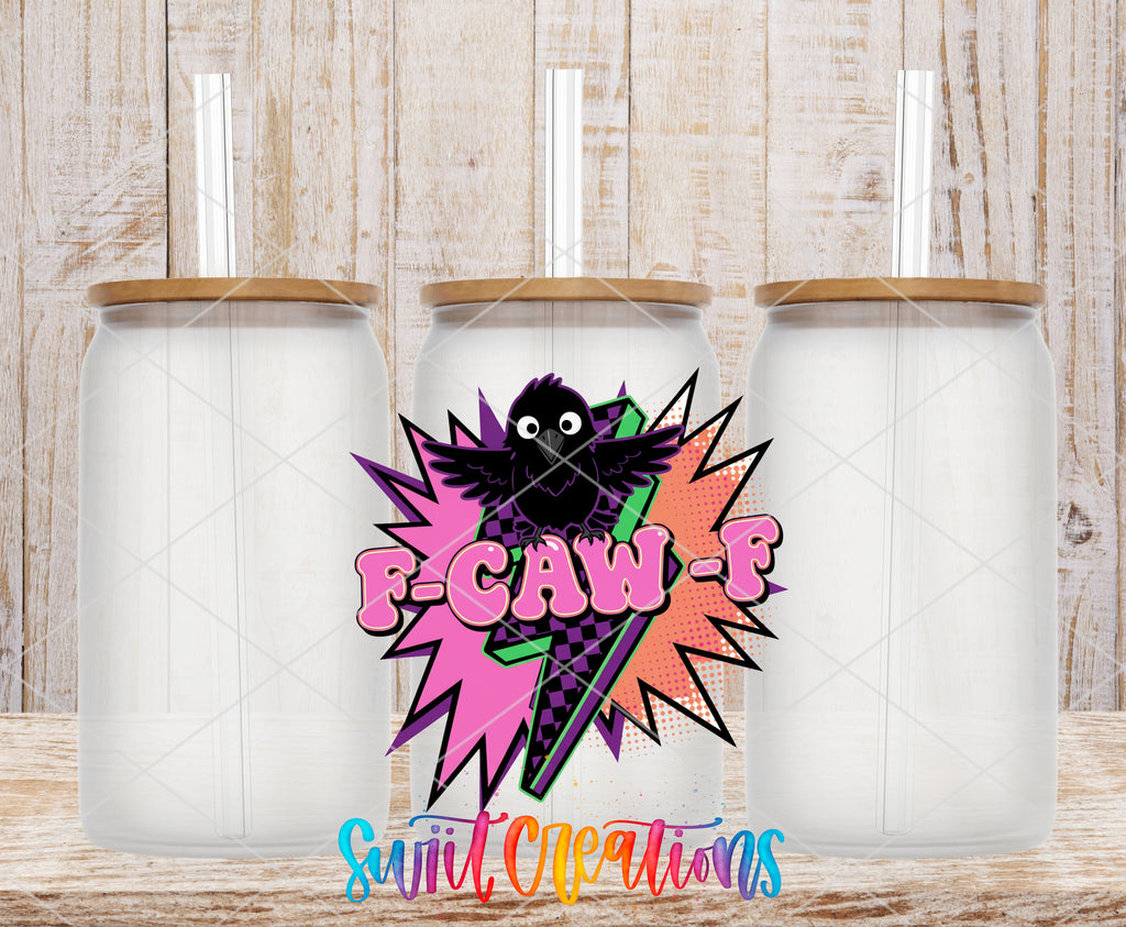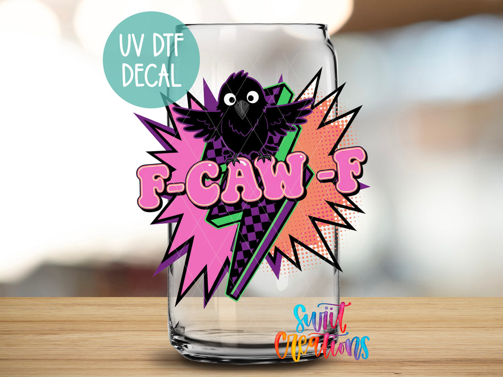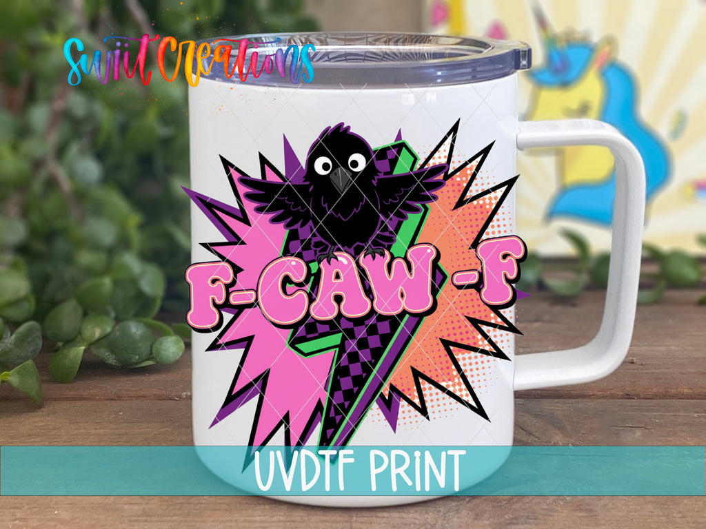 F-CAW-F UV DTF Decal | Funny Crow Raven Coffee Cup Wrap | Pop Art Bird Halloween Transfer | UV1597