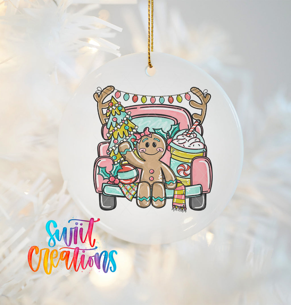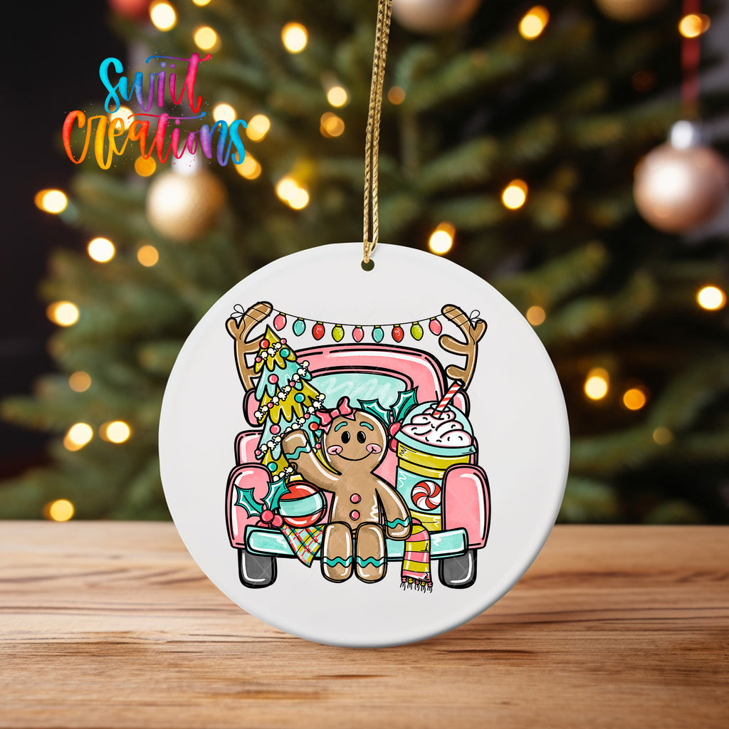 Gingerbread Girl Christmas Truck UV DTF Ornament Decal | O-1733