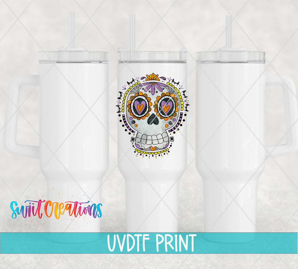 Halloween Sugar Skull Spooky Floral UV DTF Decal | UV1739