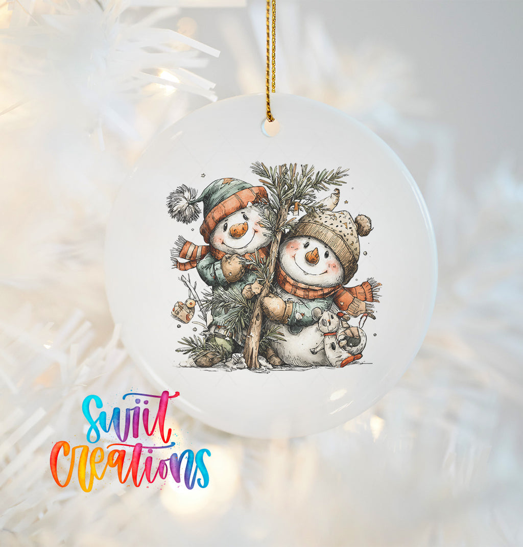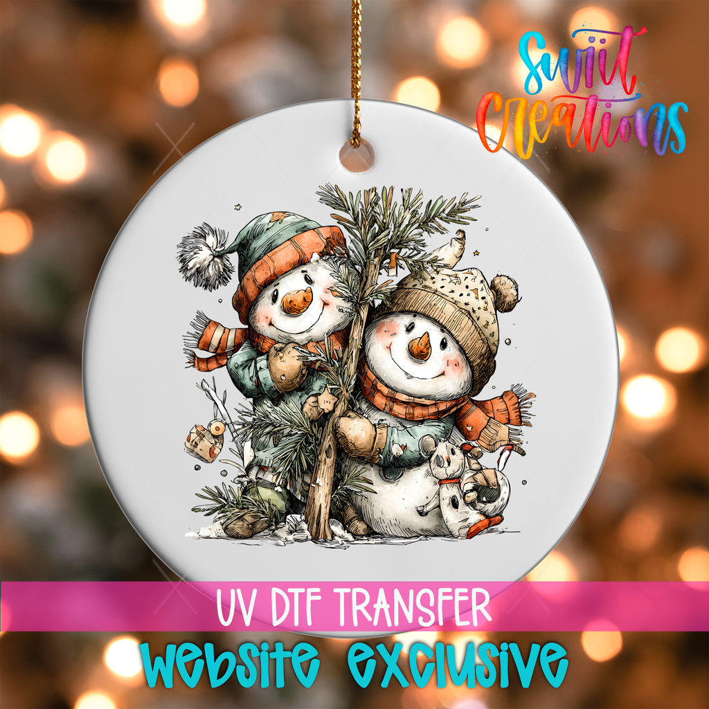 Happy Snowman with Christmas Tree UV DTF Ornament Decal | O-1713