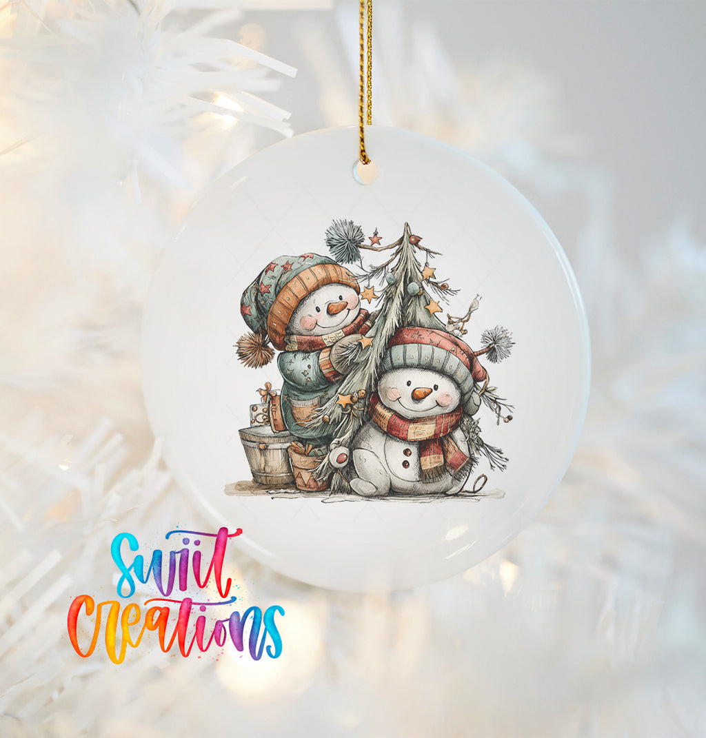 Happy Snowman with Christmas Tree UV DTF Ornament Decal | O-1715