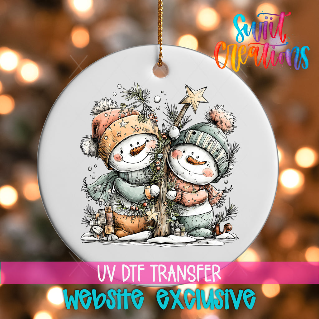 Happy Snowman with Christmas Tree UV DTF Ornament Decal | O-1716
