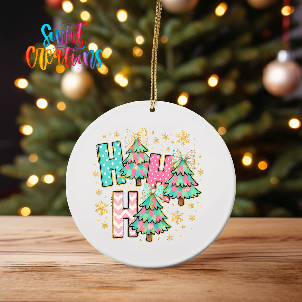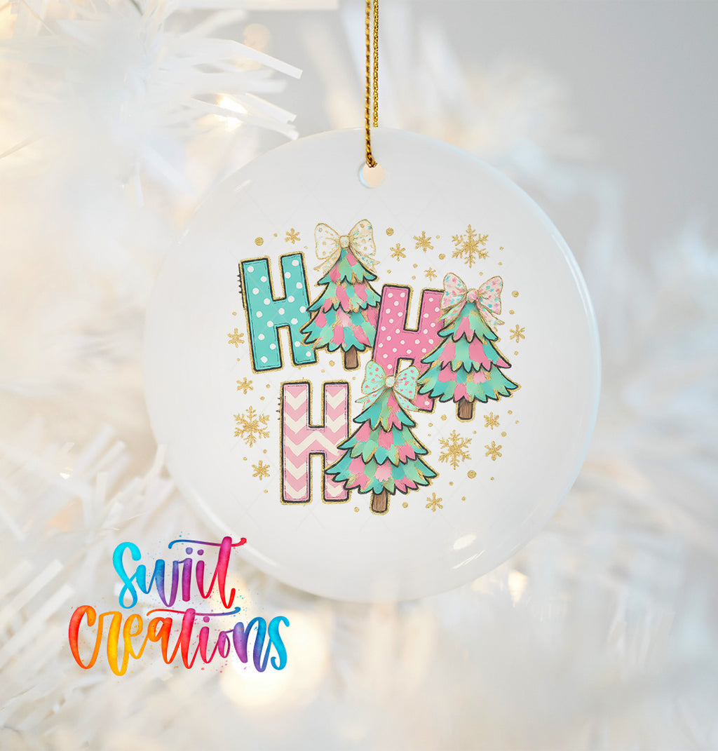 Ho Ho Ho Christmas UV DTF Ornament Decal | Colorful Trees & Glitter Bows | O-1730
