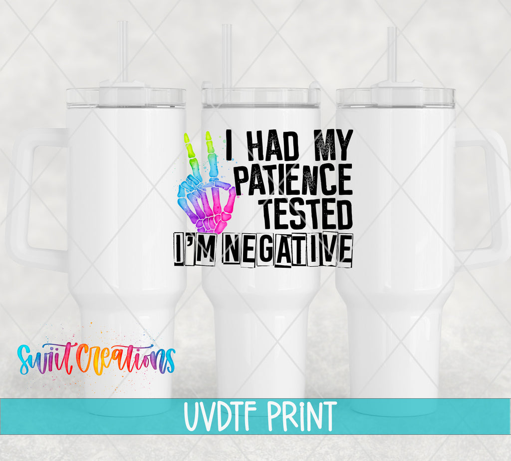 I Had My Patience Tested I'm Negative UV DTF Cup Decal UV485