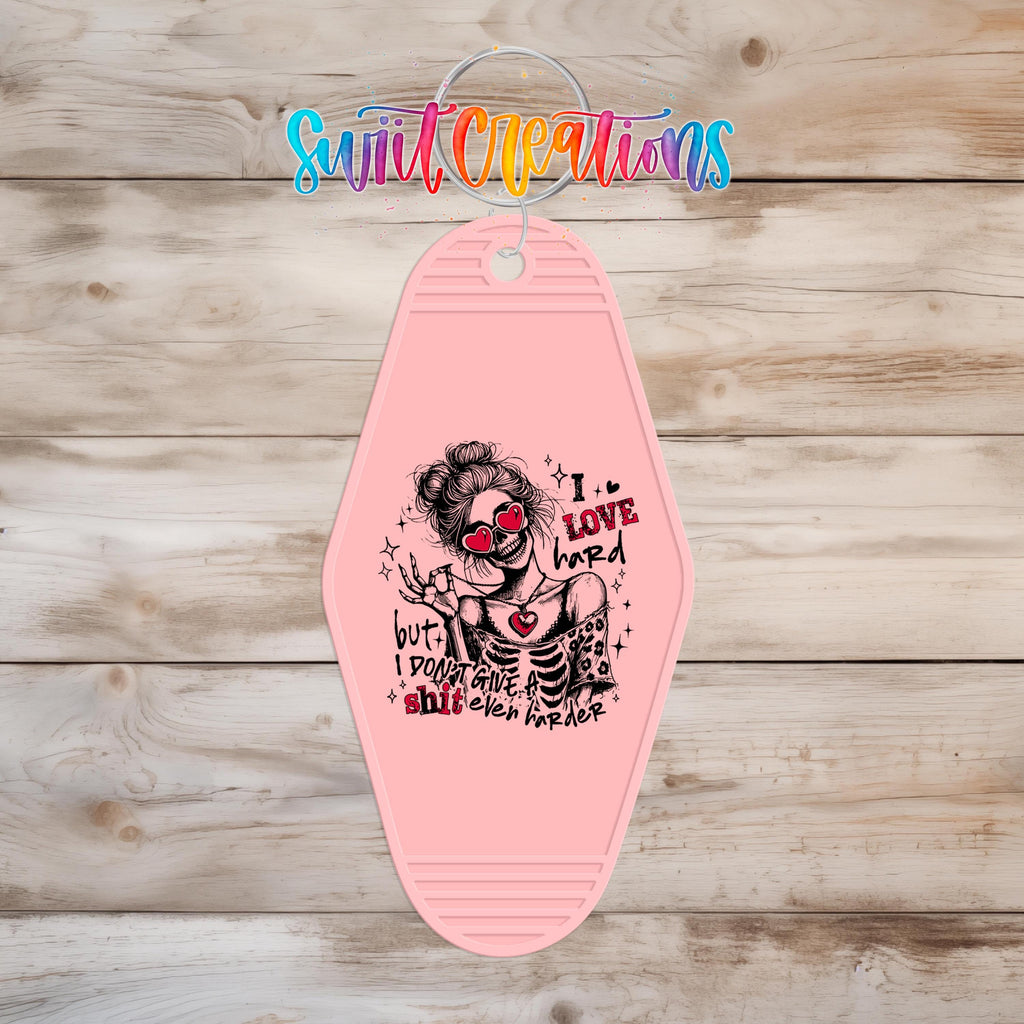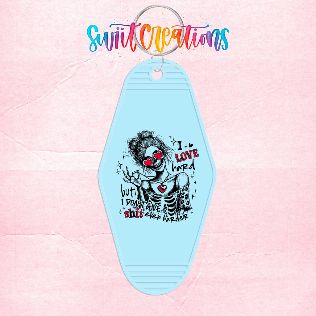 I Love Hard Motel Keychain UV DTF Transfer | Sassy Skeleton Love Design | MK1919