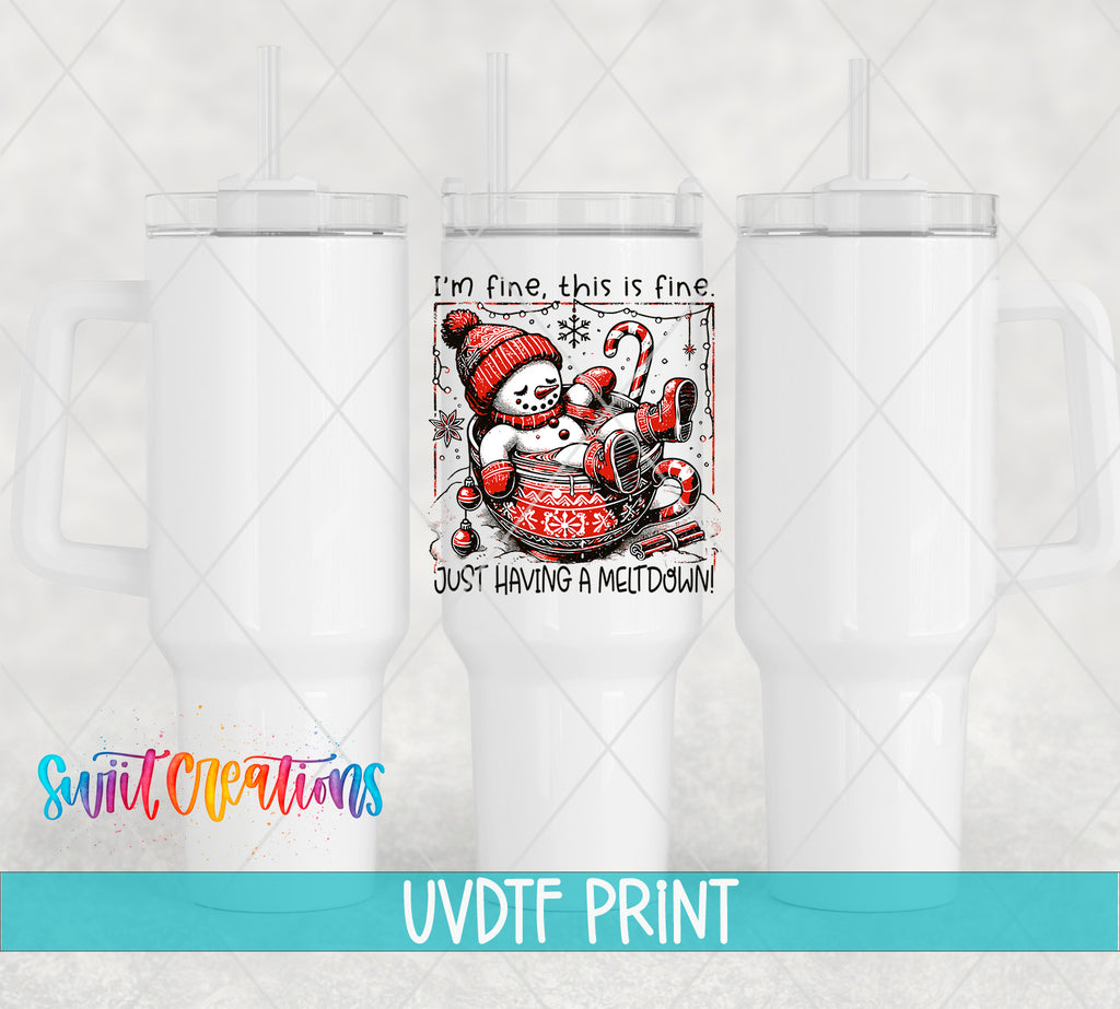 I'm Fine Just Having a Meltdown Snowman Christmas UV DTF Cup Decal UV1309