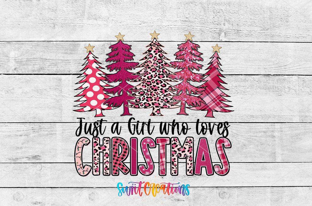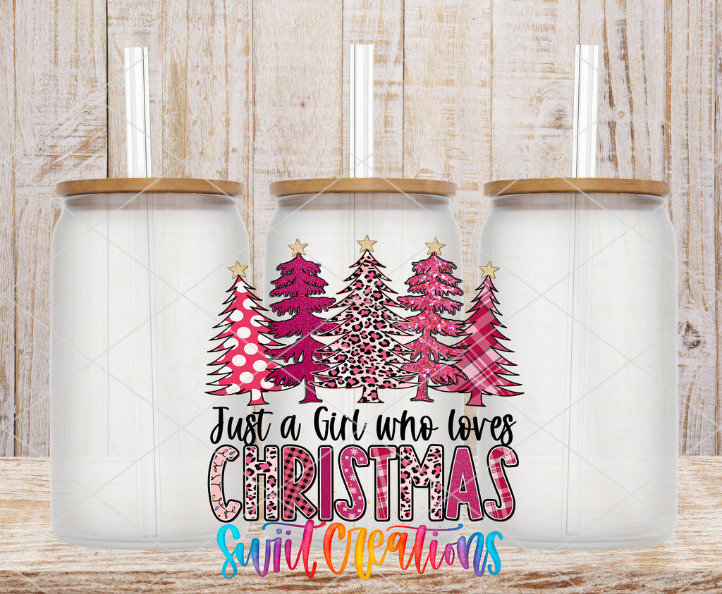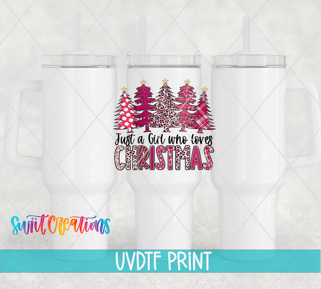 Just a Girl Who Loves Christmas UV DTF Decal | Pink Christmas Tree Holiday Cup | UV1683
