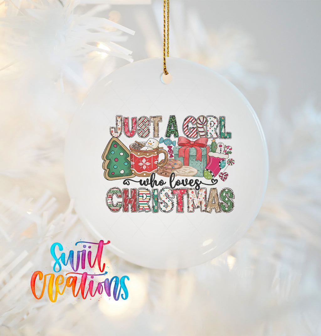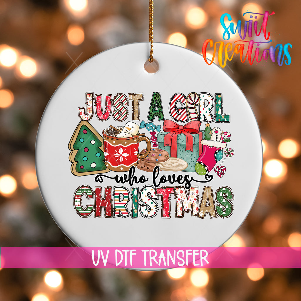 Just a Girl Who Loves Christmas UV DTF Ornament Decal | O-1682
