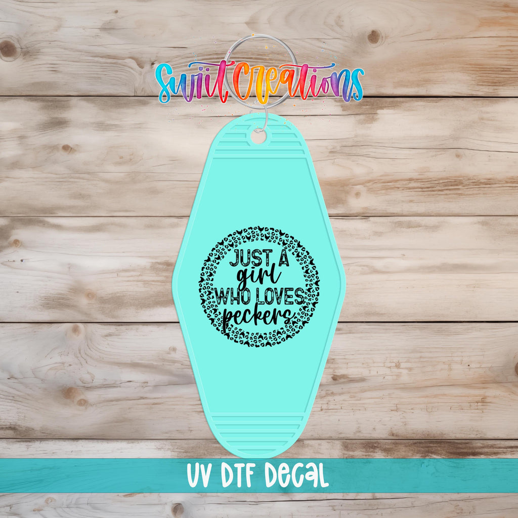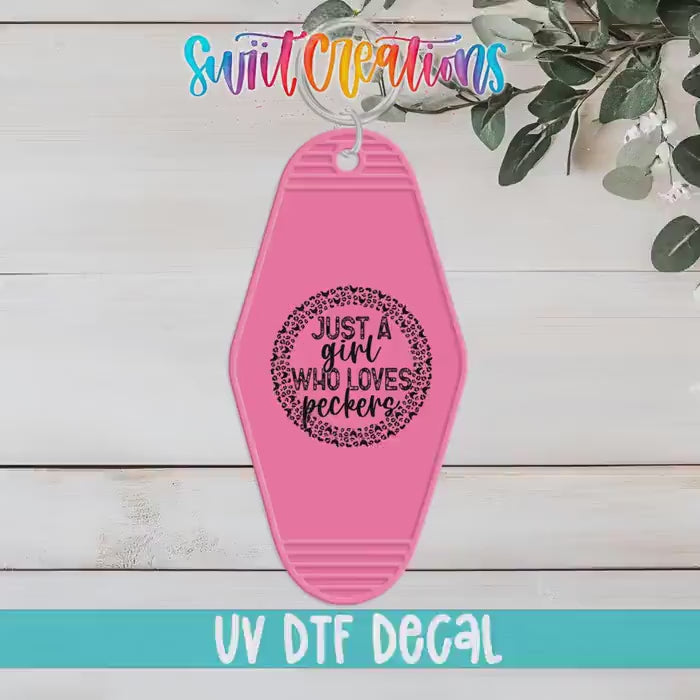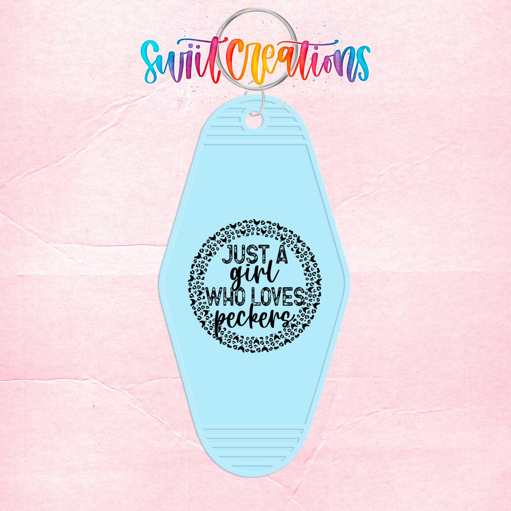 Just A Girl Who Loves Peckers Motel Keychain UV DTF Transfer | Funny Chicken Pun | MK1444