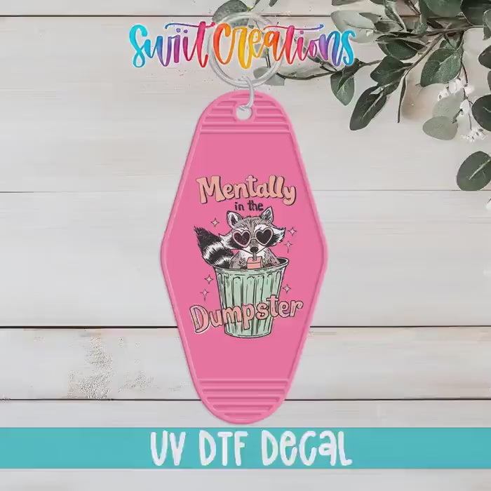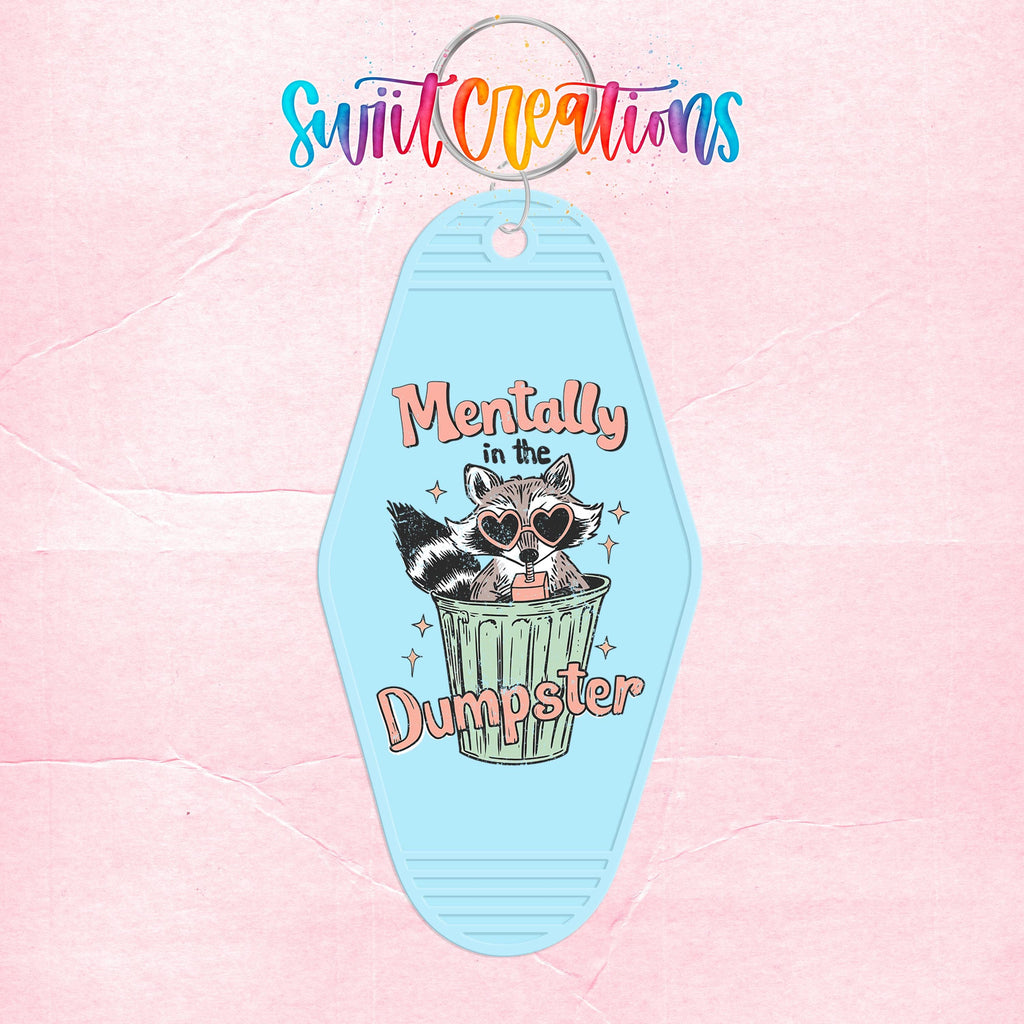Mentally In The Dumpster Motel Keychain UV DTF Transfer | Funny Raccoon Humor | MK1589