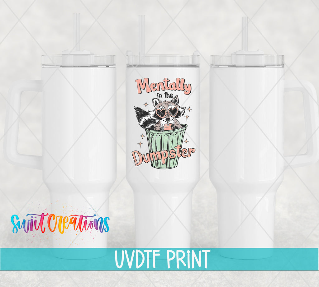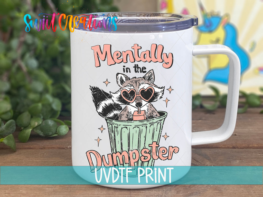 Mentally in the Dumpster UV DTF Decal | Funny Raccoon Humor Cup Transfer | UV1589
