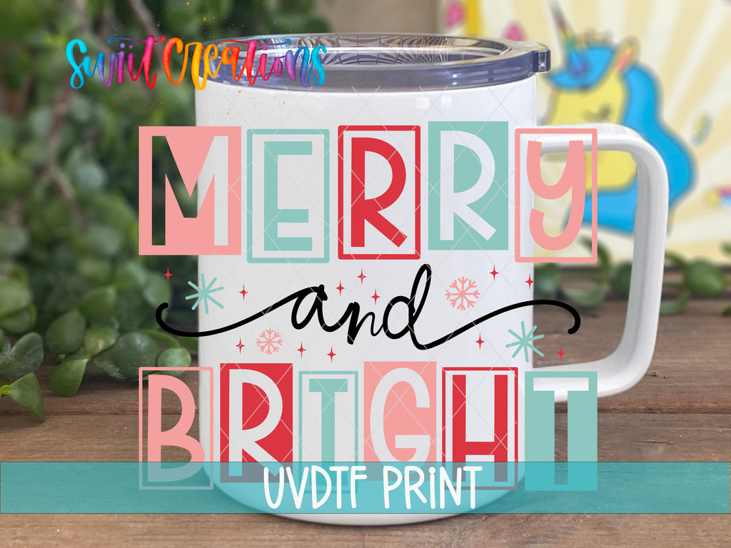 Merry and Bright Christmas UV DTF Cup Decal UV1139