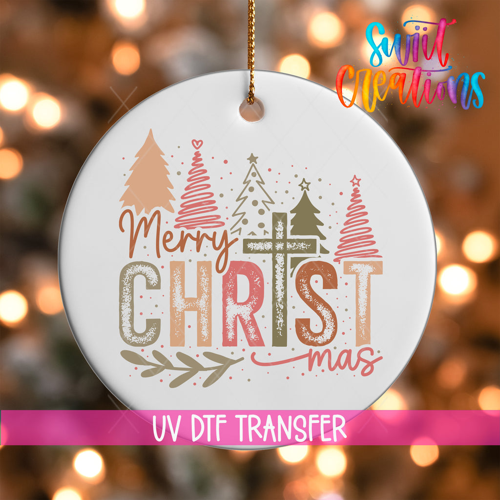 Merry and Bright Christmas UV DTF Transfer for Ornament | O-1173