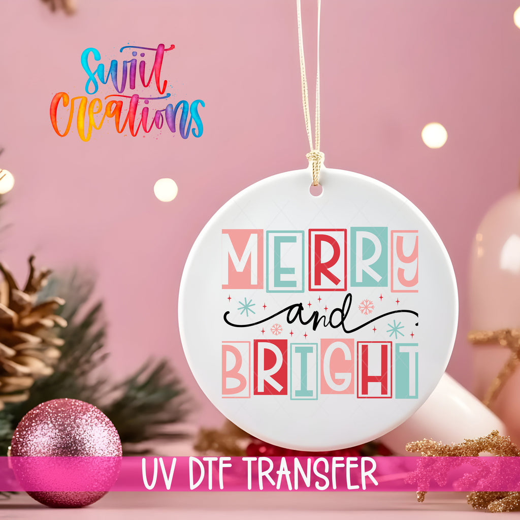 Merry and Bright Christmas UV DTF Transfer for Ornament O-1139UV