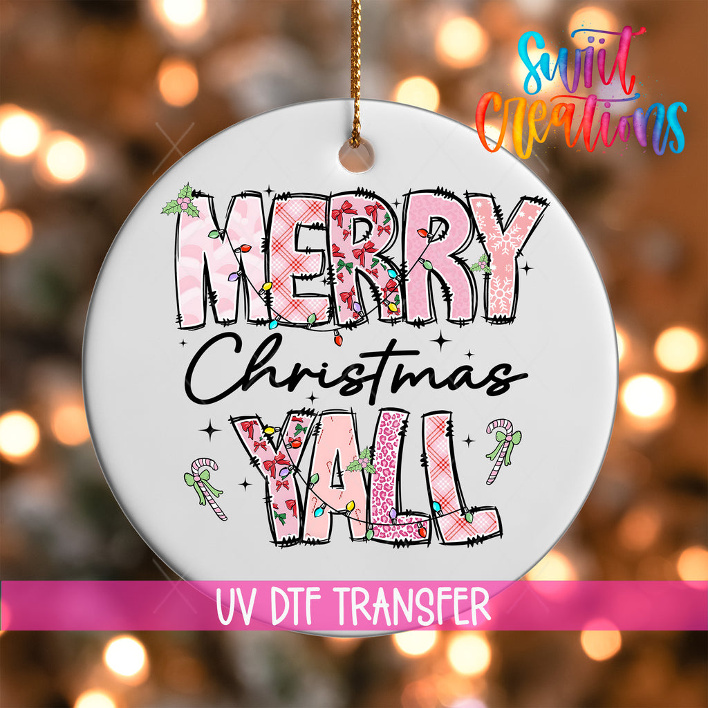 Merry Christmas Yall Christmas UV DTF Ornament Decal | Holiday Ornament Transfer | O-1207