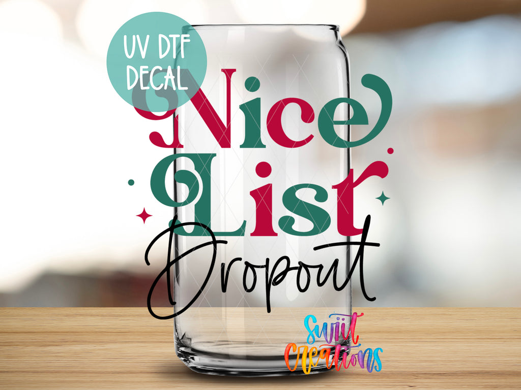Nice List Dropout Christmas UV DTF Cup Decal UV1087