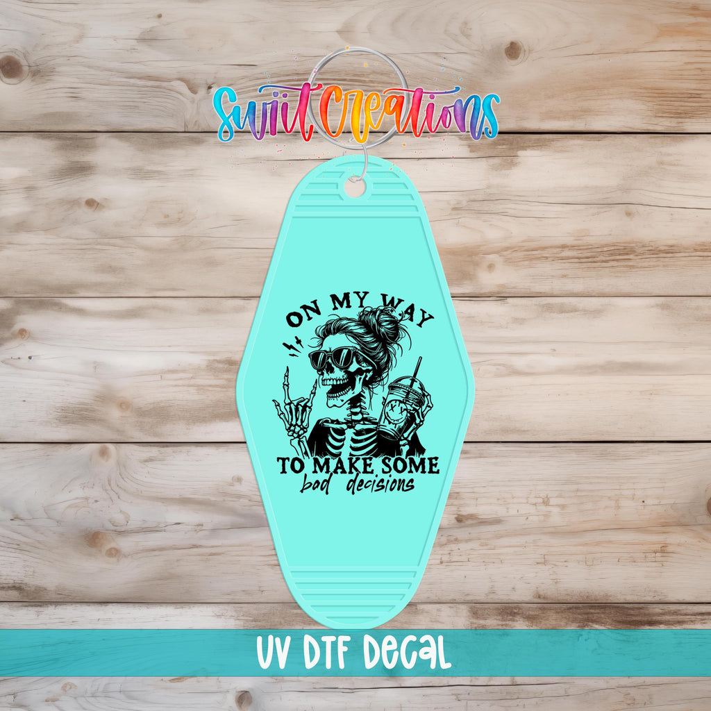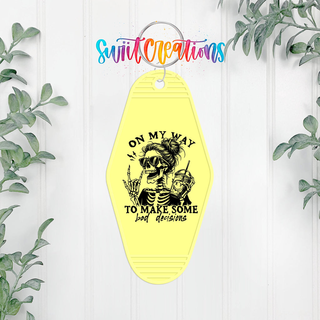 On My Way To Make Some Bad Decisions Motel Keychain UV DTF Transfer | Funny Skeleton Design | MK1319