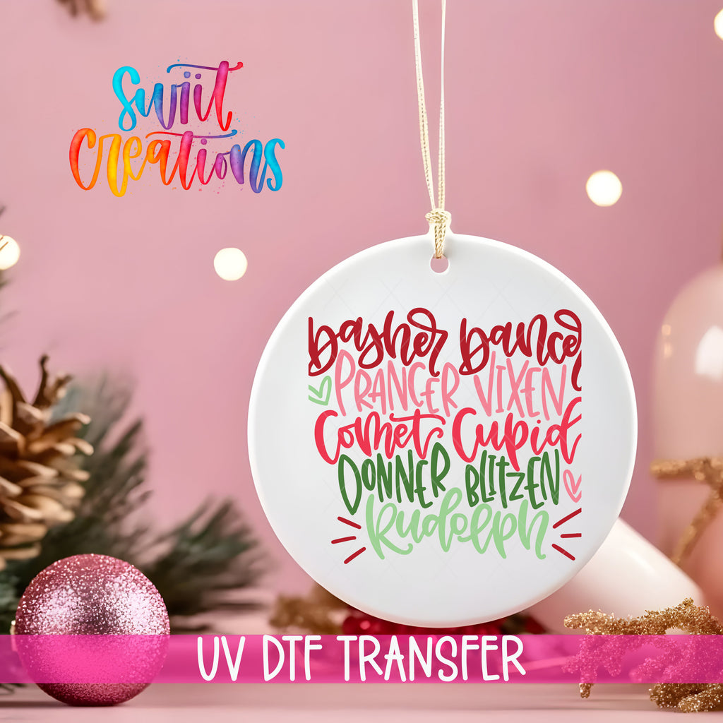 Reindeer Names Christmas UV DTF Transfer for Ornament O-299UV