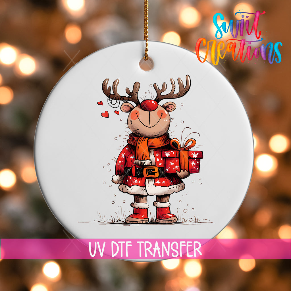 Reindeer Christmas UV DTF Transfer for Ornament O-1255