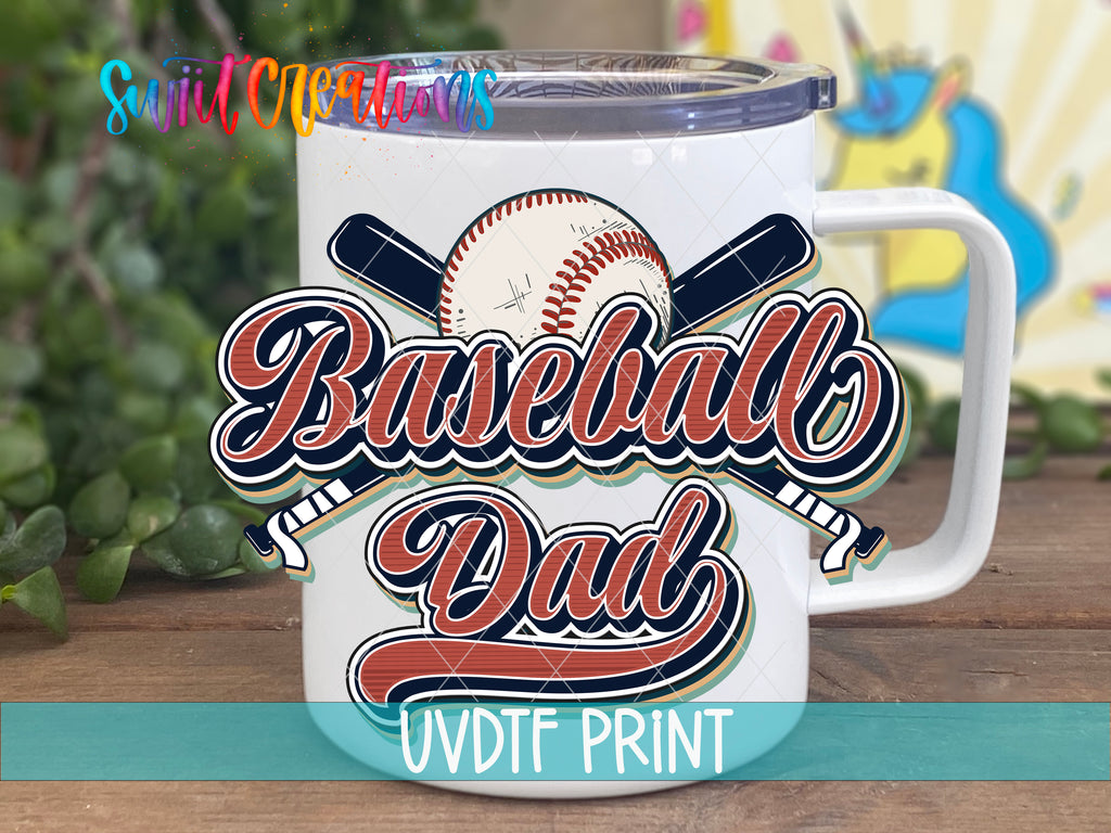 Retro Baseball Dad UV DTF Wrap | Sports Tumbler Decal for Baseball Dads | UV1501