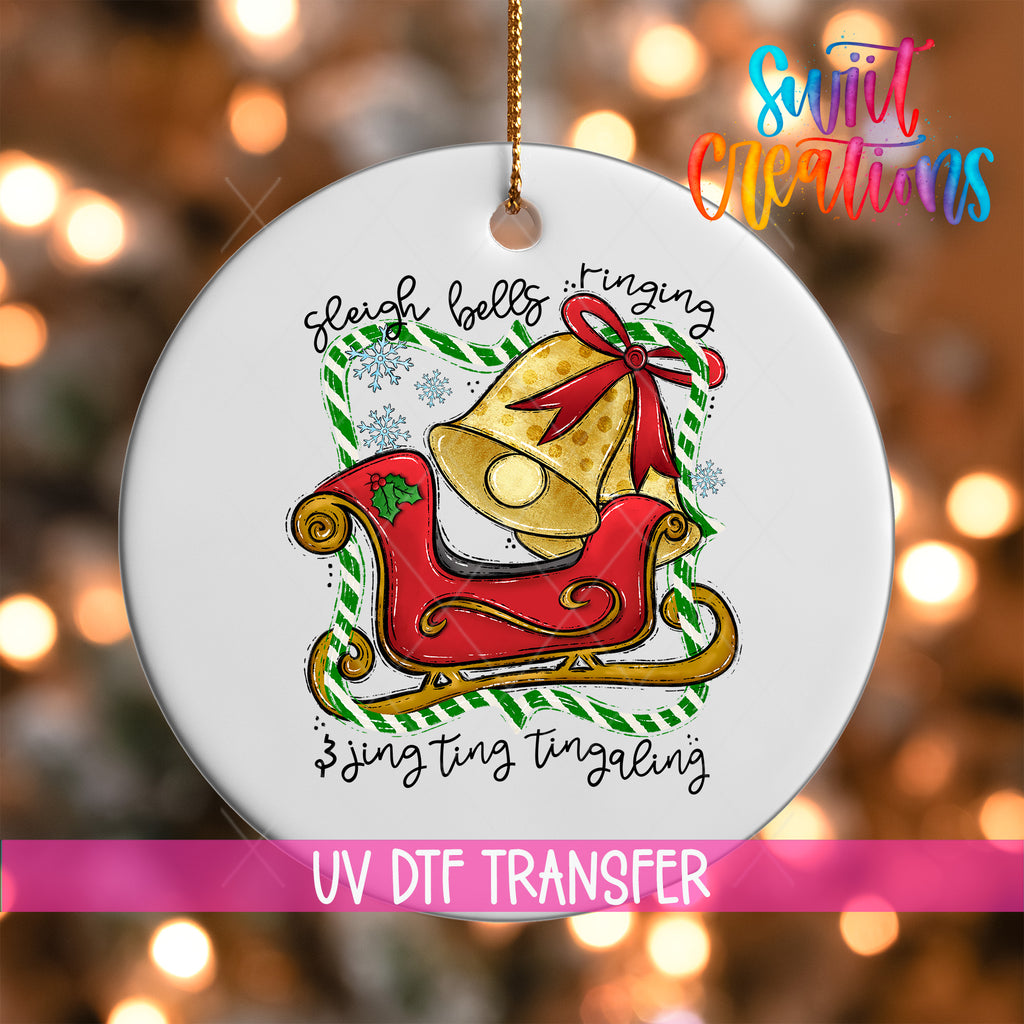 Sleigh Bells Ringing Christmas UV DTF Ornament Decal | Holiday Sleigh with Bells | O-1690