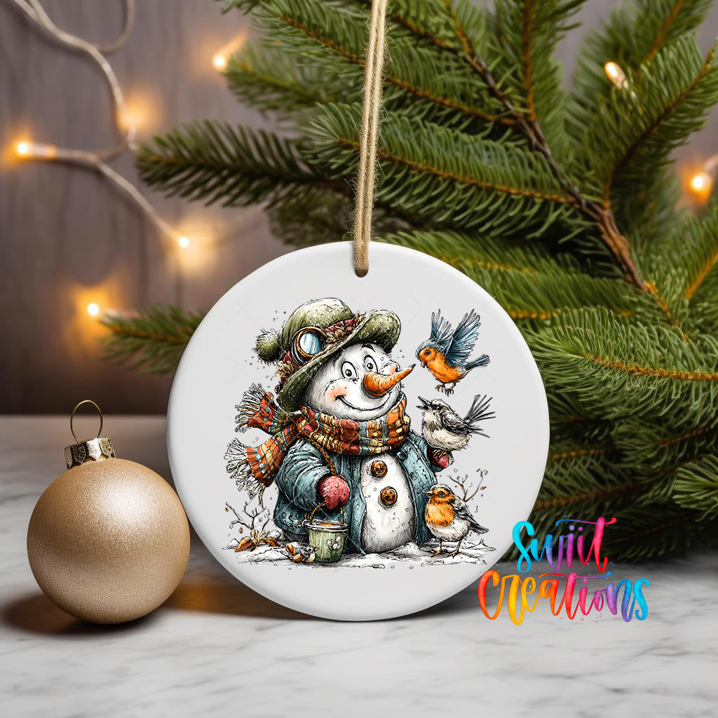 Snowman With Birds And Scarf Christmas Ornament UV DTF Transfer Winter Holiday Decor | O-1889