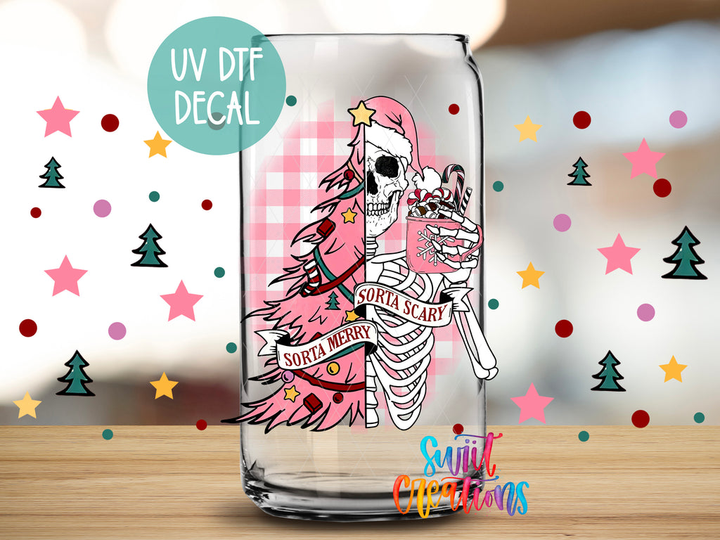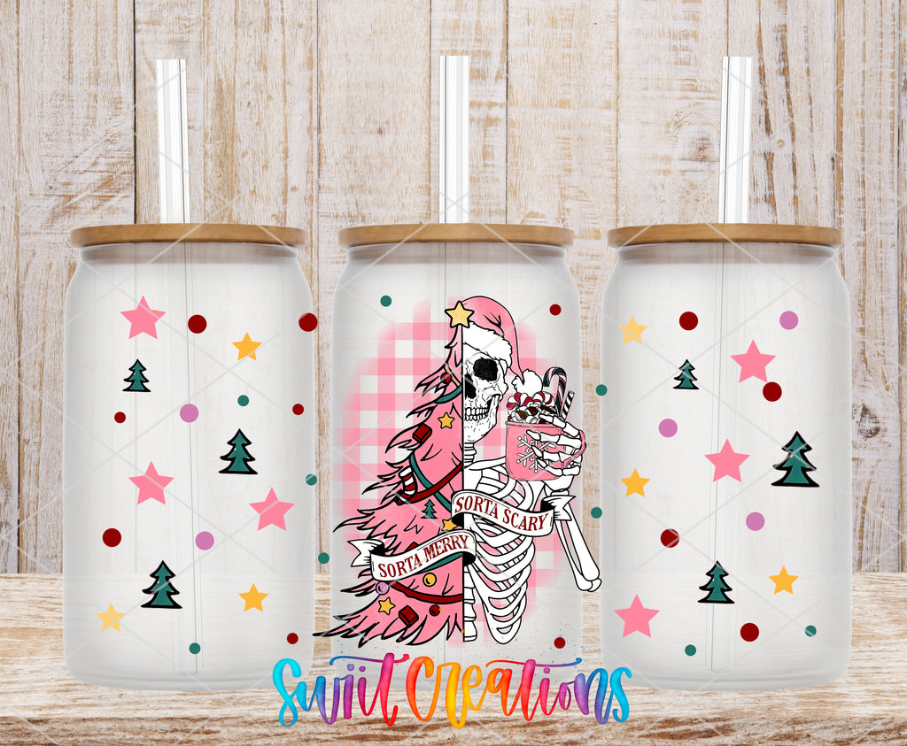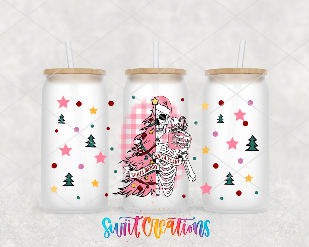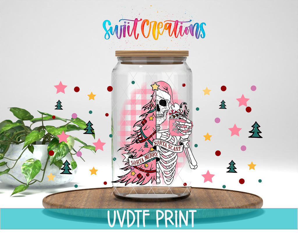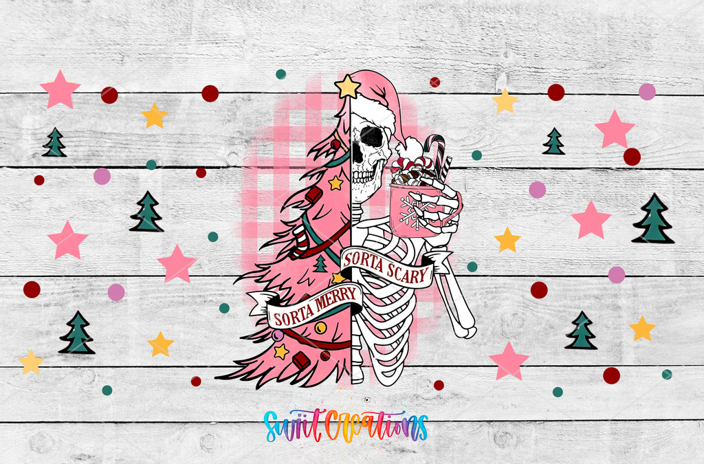 Sorta Merry Sorta Scary Pink Christmas UV DTF Cup Wrap DTF120