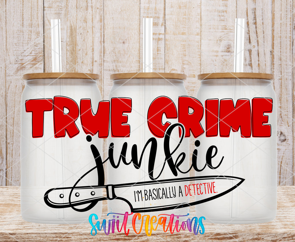 True Crime Junkie UV DTF Decal | Detective Humor Tumbler Decal | UV675