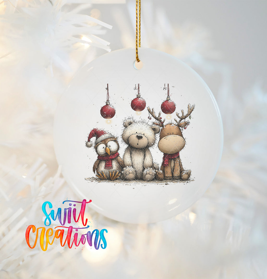 Woodland Animals Trio Christmas Ornament UV DTF Transfer Holiday Winter Decor | O-1876