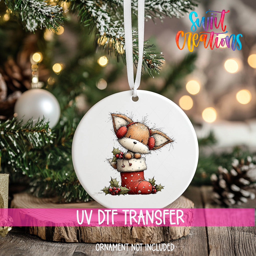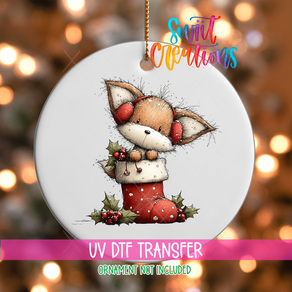 Woodland Fox In Stocking Christmas Ornament UV DTF Transfer Holiday Animal Winter Decor | O-1870