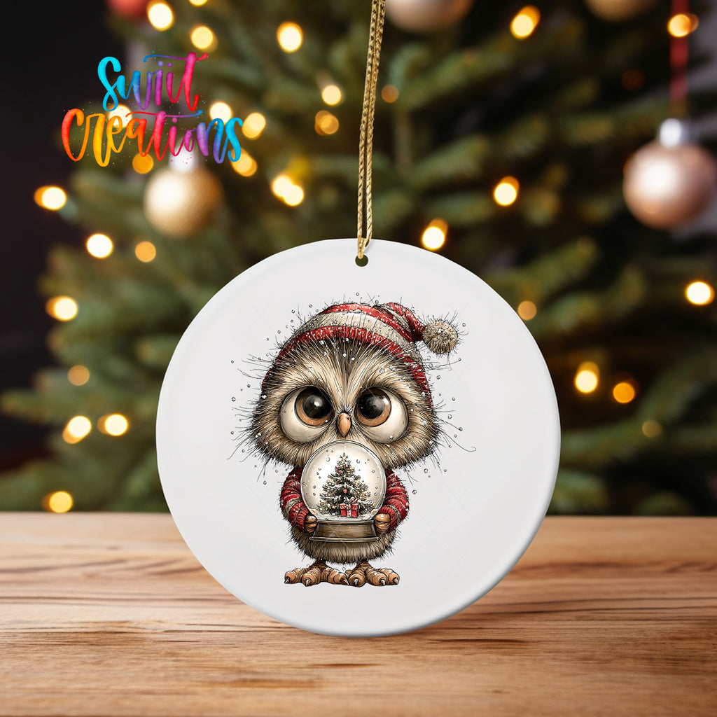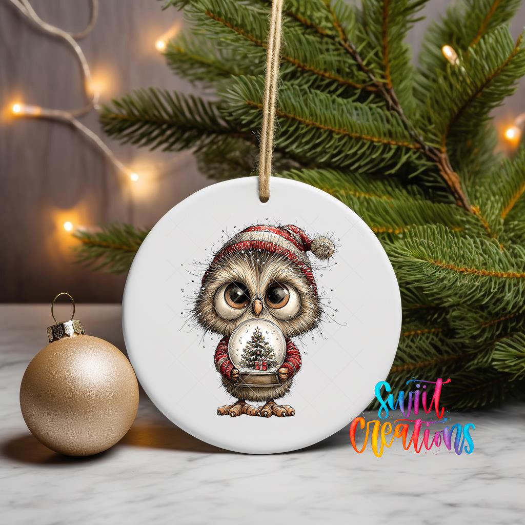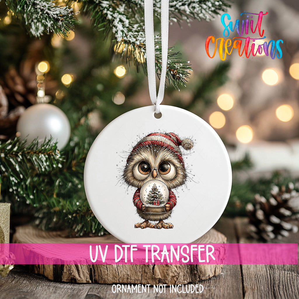 Woodland Owl Holding Snow Globe Christmas Ornament UV DTF Transfer Holiday Animal Winter Decor | O-1881
