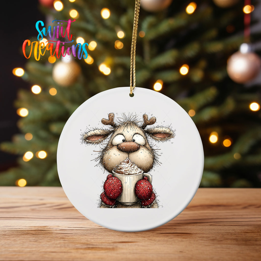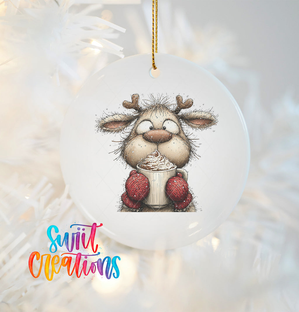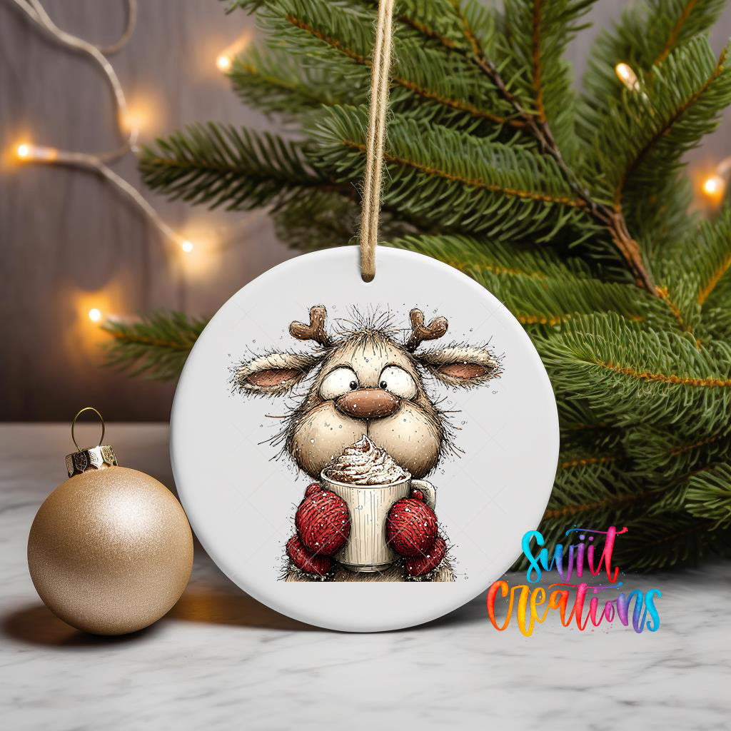 Woodland Reindeer With Cocoa Christmas Ornament UV DTF Transfer Holiday Animal Winter Decor | O-1867