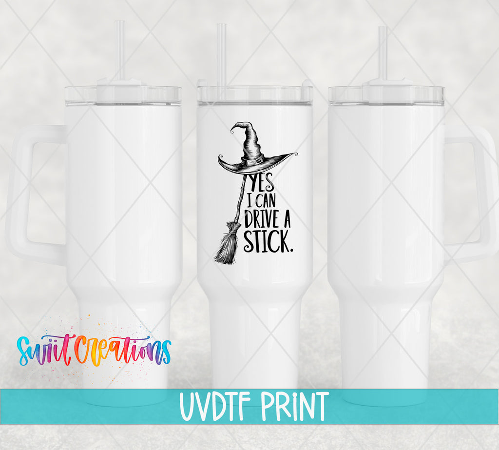 Yes I Can Drive A Stick Witch Hat Funny UV DTF Decal | UV1588